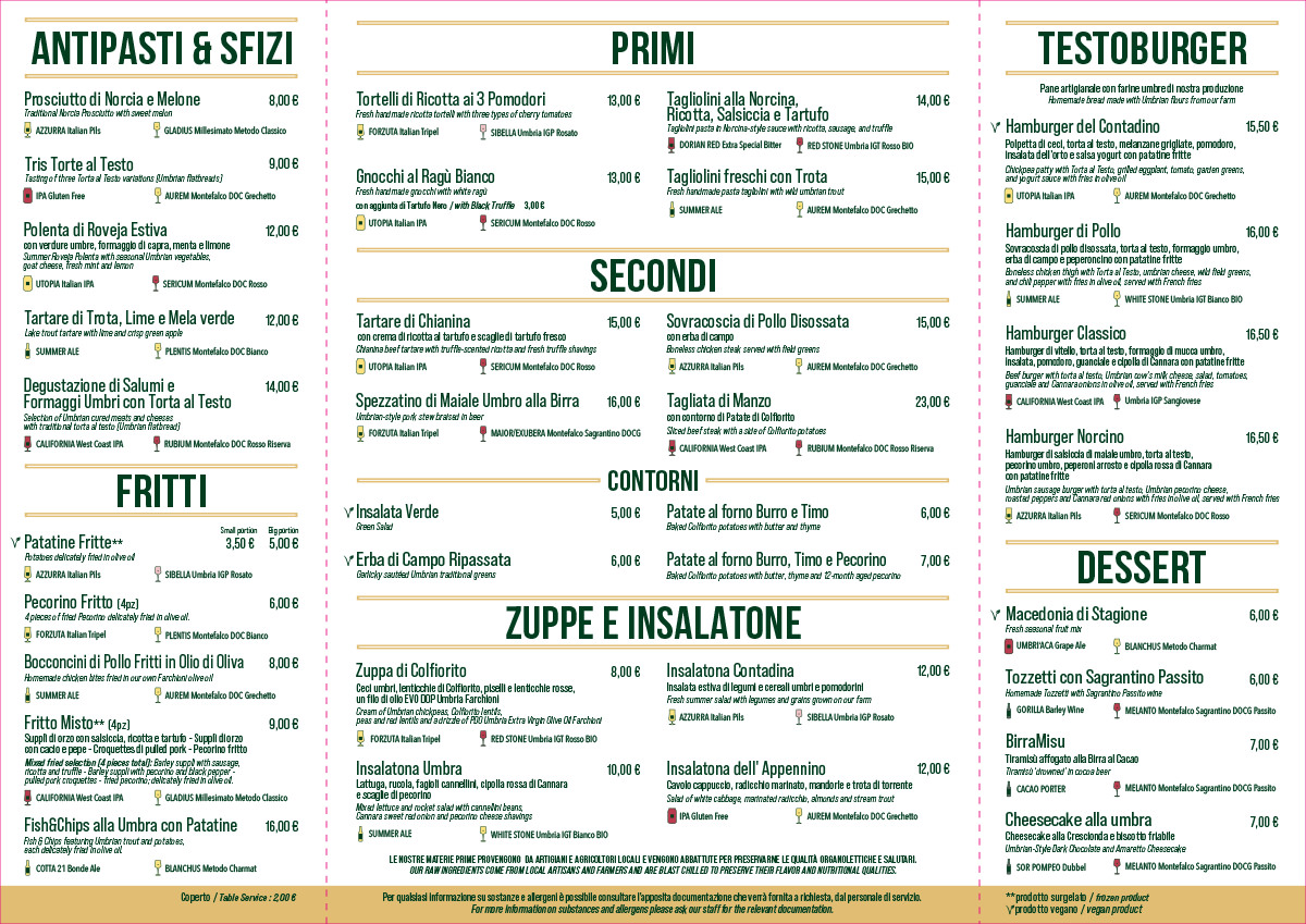 Degustazione di salumi e formaggi umbri con torta al testo | 14,00€ |